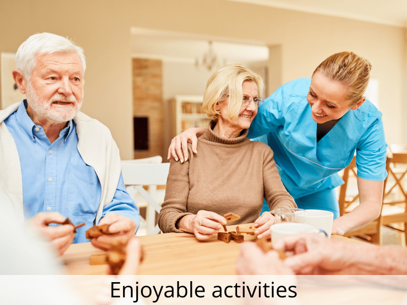 Of course, not everyone has the ability to participate in activities such as those who are bedbound or have advanced dementia. You still want to see a good amount of people participating or the staff members encouraging those who can to join in.