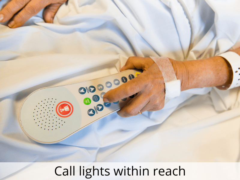 Patients and residents should each have a call light that is within their reach to call for help when they need them.