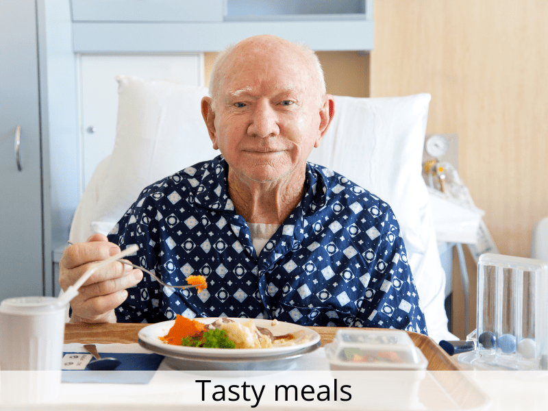 Check with nursing if you want to bring anything. If you or your loved one receives speech therapy for swallowing issues, the food you bring should match the recommended diet.