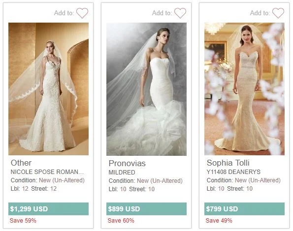 A few of the wedding dresses available on PreOwned Wedding Dresses.
