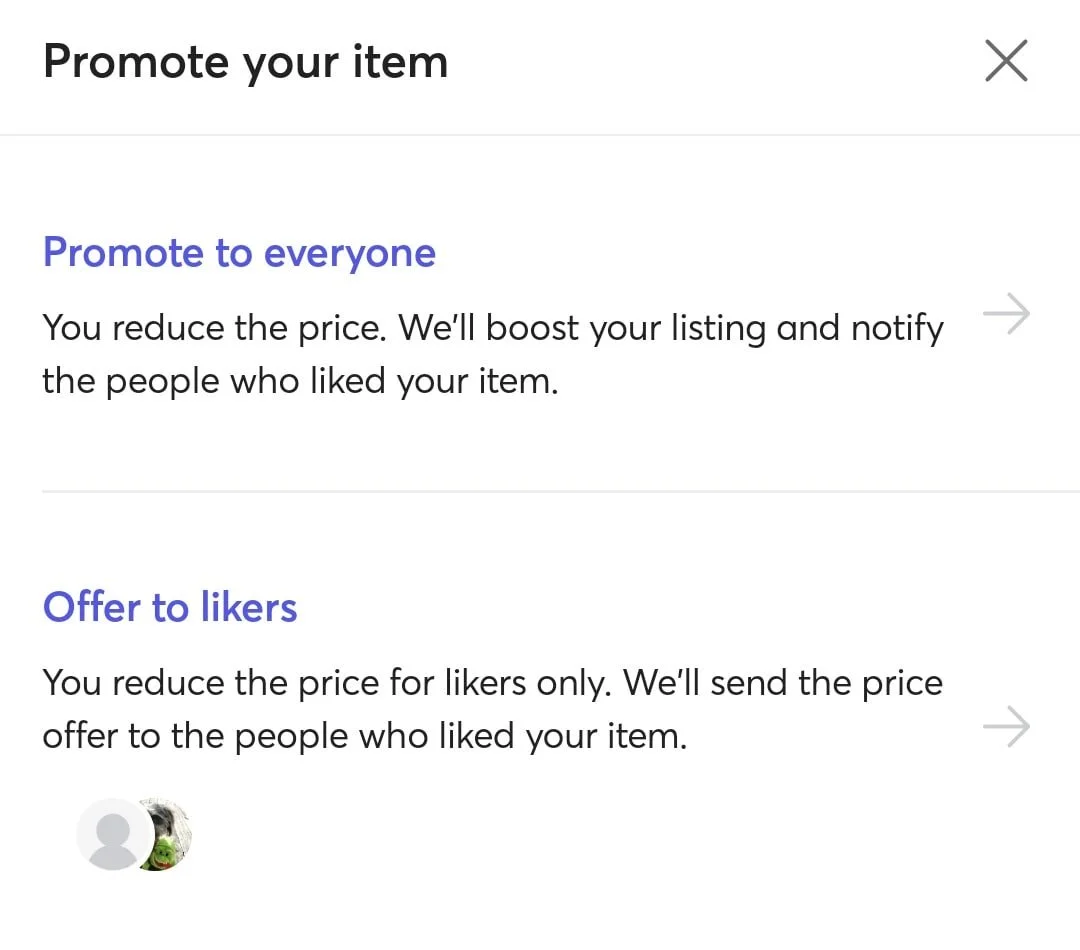 As a seller, you have options to negotiate price as well. You can make an offer to likers or promote an item by lowering its public price.