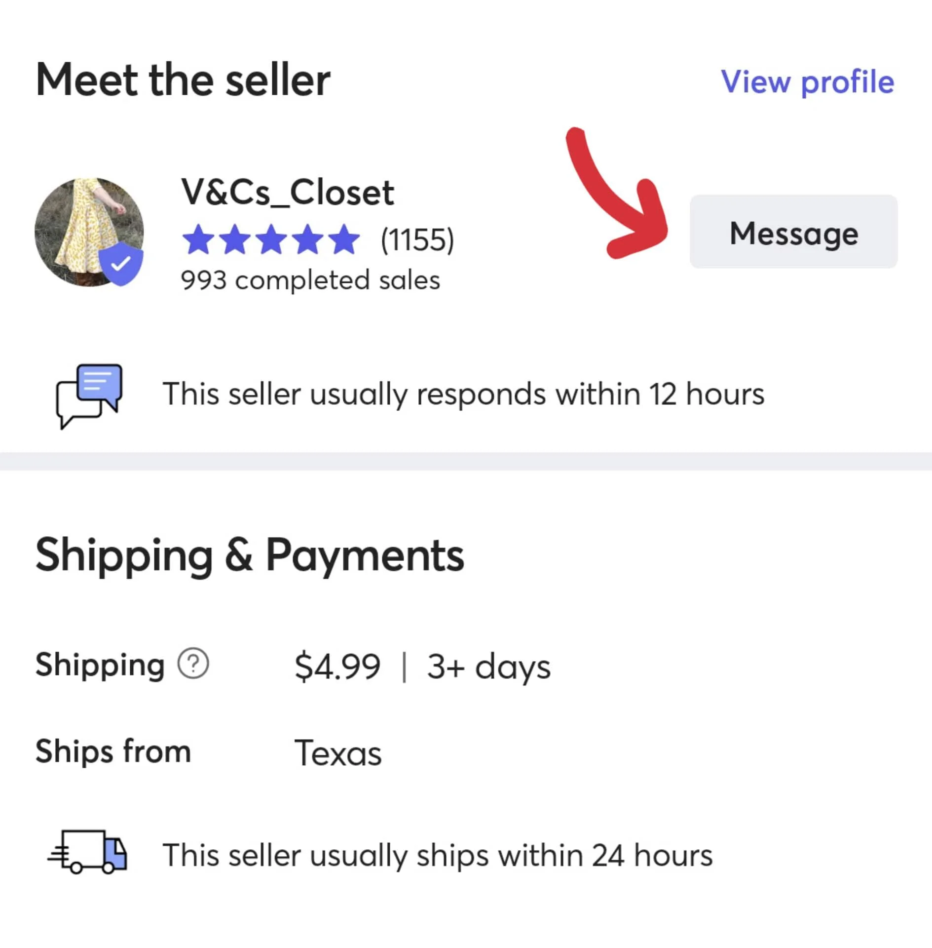 Another way to negotiate is to message the seller directly. You may have to do this if you want to offer less than 75% of the listed price of an item.