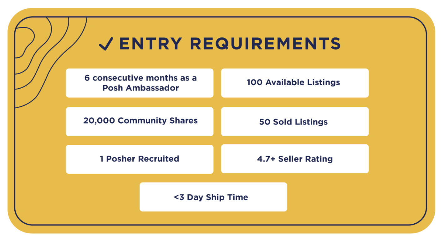 In February 2022, Poshmark introduced the Poshmark Ambassador II status with an additional set of benefits and requirements.