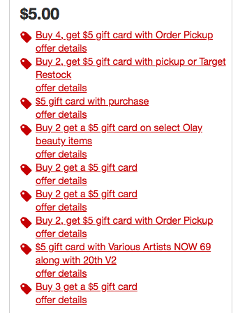 One of my favorite Target deals is when you buy a certain number of designated items and get a free gift card with it.
